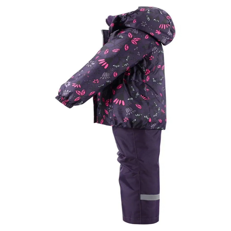 Cet ensemble d'hiver pour filles est tout simplement idéal pour les activités de plein air ! Les pantalons sont fabriqués en matériau ultra résistant et sont dotés d'une protection contre la neige. Les bretelles réglables et amovibles permettent d'ajuster parfaitement les pantalons à la taille, et la couture centrale arrière est scellée pour assurer l'imperméabilité. La veste est ornée d'un motif floral et est équipée d'une capuche amovible sûre et pratique, tandis que les poches à velcro garderont tous les petits trésors trouvés au cours de la journée ! La veste et les pantalons sont fabriqués en matériau coupe-vent et respirant avec une surface déperlant et anti-salissure.