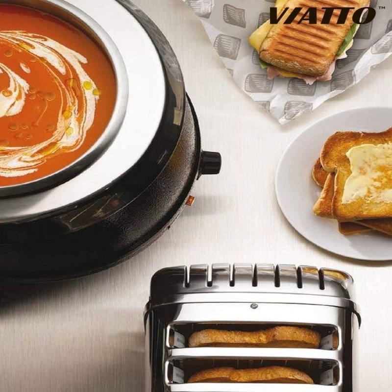 Le réchauffeur de soupe (marmite) VIATTO SB-6000 est destiné au réchauffement et au stockage temporaire des soupes à la température souhaitée. Le boîtier est en métal peint, le réservoir intérieur est en acier inoxydable. Il peut être utilisé lors de l'organisation de buffets, de réceptions, de cantines en libre-service, de banquets à emporter et dans d'autres établissements de restauration et de commerce. Volume utile : 9 litres. Puissance : 400 Watts