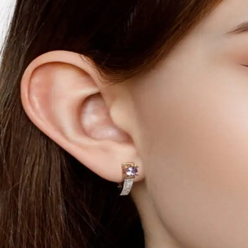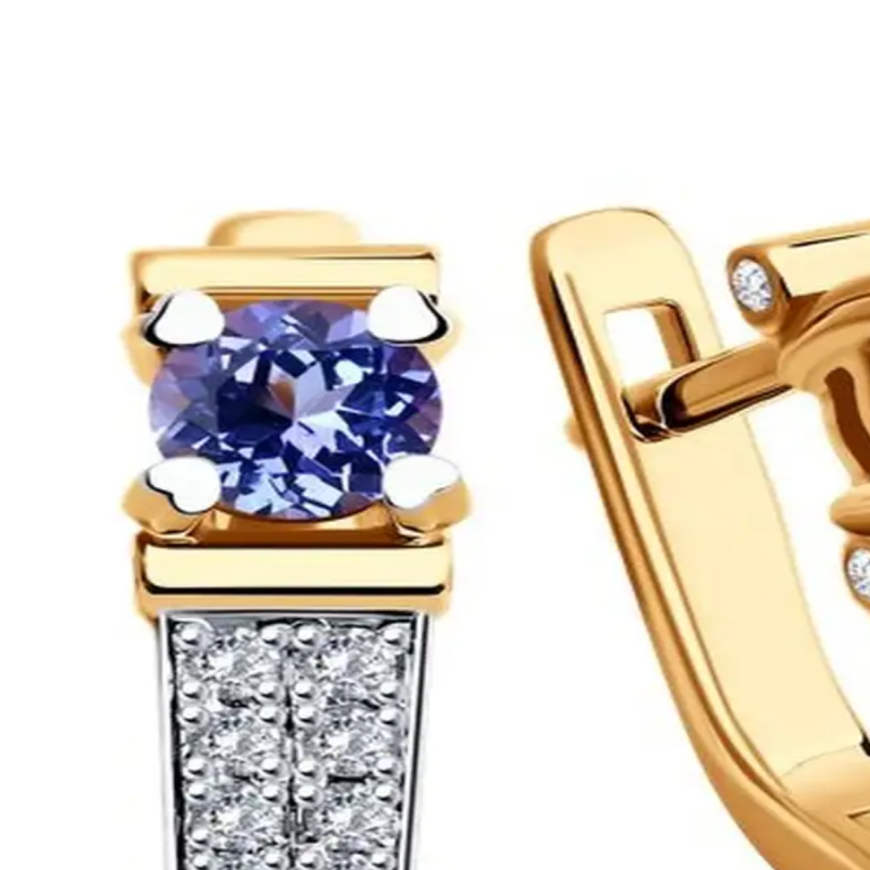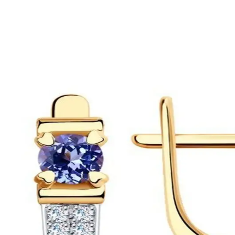 **Boucles d'oreilles en or avec des diamants et des tanzanites.** L'article est en or 585, insertions 12 Br Rond 17 0,090 2/3 A, 24 Br Rond 17 0,90*1,00 0,096 2/3 A, 2 Tanzanite Rond 4,00