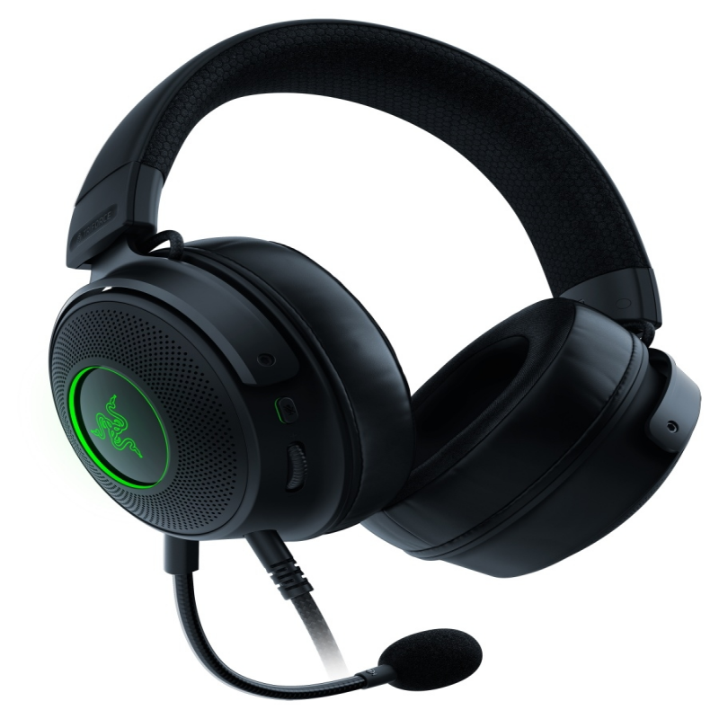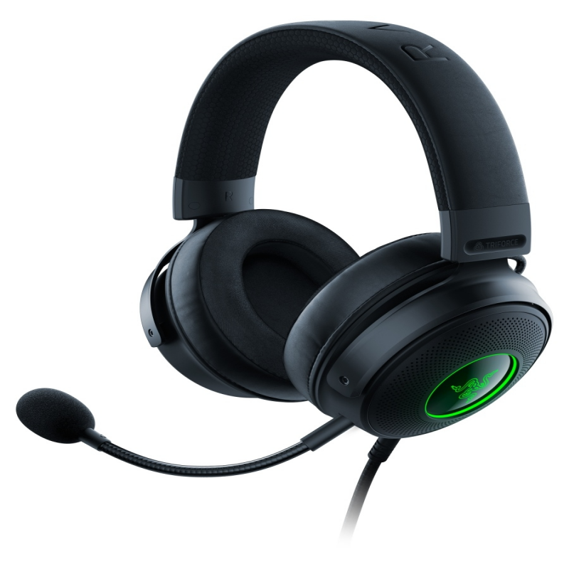 Coloriez votre immersion avec le Razer Kraken V3 - un casque de jeu pour ordinateur avec éclairage Razer Chroma RGB pour créer des effets lumineux dynamiques dans les jeux et sur les appareils. Ce casque, qui vous séduira par son apparence et son son, est équipé de transducteurs améliorés et de la technologie de son surround pour un son réaliste. Le son surround amélioré 7.1 vous plonge au cœur de l'action du jeu. Le transducteur à 3 composants offre un son plus dynamique, tandis que le microphone amovible supprime tous les bruits environnants, ne laissant que votre voix. Personnalisez l'éclairage comme vous le souhaitez dans plus de 150 jeux avec le support de 500 appareils de plus de 50 fabricants. / Connexion : USB Type-A / Son surround 7.1 THX Spatial Audio / Haut-parleurs Razer TriForce de 50 mm / Microphone cardioïde Razer HyperClear / Contrôle du volume / Interrupteur de microphone Développer la description